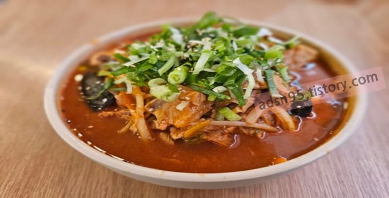 국물은 찐한 고기국물 베이스에 얼큰하면서 진한맛이지만 맵찔이들도 먹을만큼은 되는것 같았습니다.